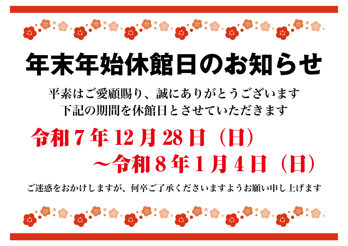 年末年始休館日のお知らせ